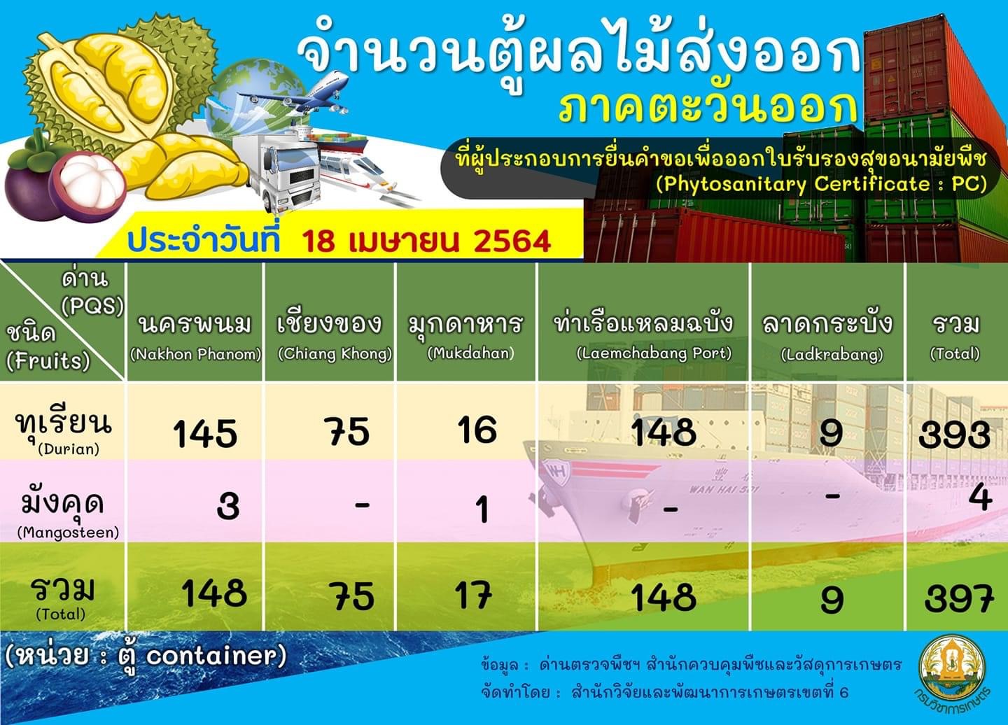 จำนวนตู้ทุเรียนเพิ่มขึ้น 52 ตู้